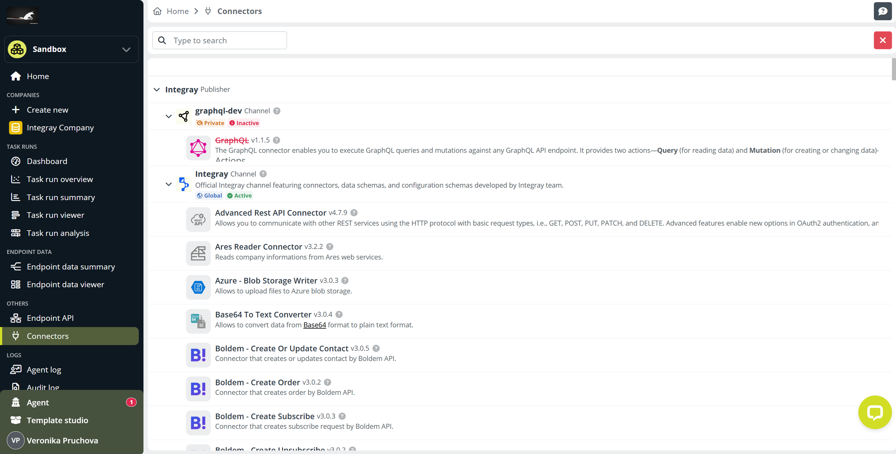 The Connectors page allows you to browse and manage connectors available in your Integray environment.